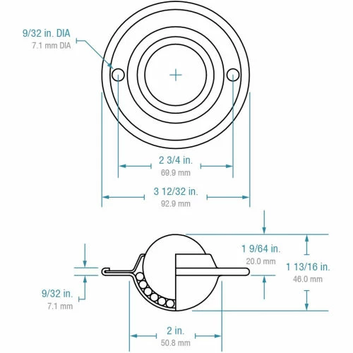 Hudson Bearings 1" Nylon Ball Carbon Steel Low-Profile Flying Saucer Ball Transfer NFSBT-1CS
