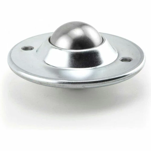 1-1/2 inch carbon steel main ball rotating on carbon steel 3/16 inch support balls in a precision formed carbon steel housing. Hudson Bearings is an innovative domestic manufacturer of ball transfers. Flange-Mounted units feature a hardened and zinc plated mounting cup and a foam seal. Housing options include stainless steel with option for felt seal. Main and support ball options include stainless, nylon, phenolic, and delrin. Flange mounted transfers can be used in either ball up or down position.