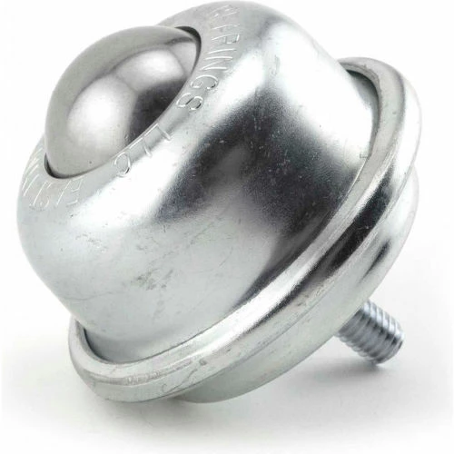 Constructed with corrosion-resistant plated carbon steel housing for added support and long lasting durability. 1-1/2″ carbon steel main ball rotates on a bed of 3/16″ support balls. Support cup is hardened, plated and rust-resistant. Stud size is 3/8-16. Capacity is 250 lbs. Color finish is Zinc. Hudson Bearings is an innovative domestic manufacturer of ball transfers. Stud Mounted units feature a hardened and zinc plated mounting cup and a foam seal. Housing options include stainless steel with option for felt seal. Main and support ball options include stainless, nylon, phenolic, and delrin. Stud mounted transfers can be used in either ball up or down position.