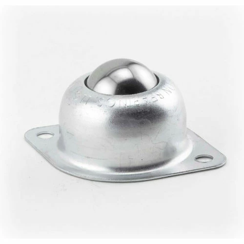 One inch carbon steel main ball rotates on a bed of eighty 1/8 inch support balls. Support cup is hardened and plated. The cover is also hardened and plated to resist rust. Hudson Bearings is an innovative domestic manufacturer of ball transfers. Flange-Mounted units feature a hardened and zinc plated mounting cup and a foam seal. Housing options include stainless steel with option for felt seal. Main and support ball options include stainless, nylon, phenolic, and delrin. Flange mounted transfers can be used in either ball up or down position.