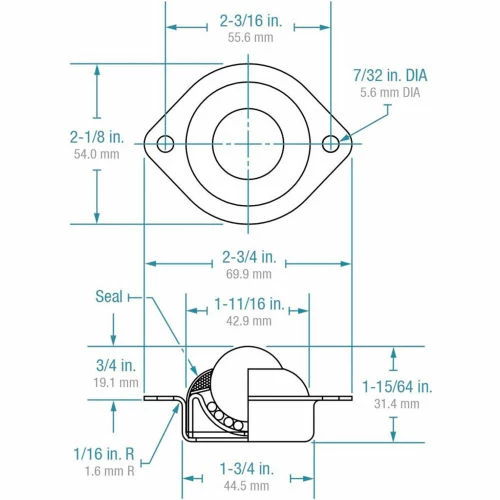 One inch nylon main ball rotates on a bed of eighty 1/8 inch support balls. Support cup is hardened and plated. The cover is also hardened and plated to resist rust. Hudson Bearings is an innovative domestic manufacturer of ball transfers. The Low-Profile ball transfer is designed to be recessed into a 1-3/4″ hole. Support cup is hardened and plated. Housing and ball options include stainless, nylon, phenolic, and delrin.
