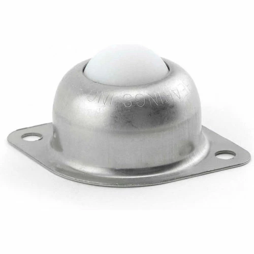 One inch nylon main ball rotates on a bed of eighty 1/8 inch support balls. Support cup is hardened and plated. The cover is also hardened and plated to resist rust. Hudson Bearings is an innovative domestic manufacturer of ball transfers. Flange-Mounted units feature a hardened and zinc plated mounting cup and a foam seal. Housing options include stainless steel with option for felt seal. Main and support ball options include stainless, nylon, phenolic, and delrin. Flange mounted transfers can be used in either ball up or down position.