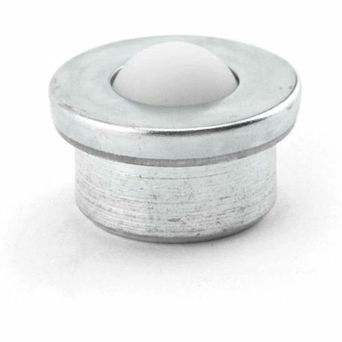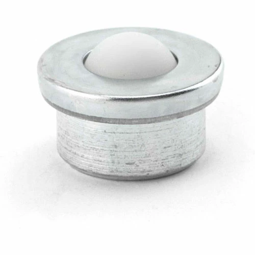 5/8 inch nylon main ball rotates on a bed of 3/32 inch carbon steel support balls in a carbon steel machined cup. The cup and cover are hardened and zinc plated. Hudson Bearings is an innovative domestic manufacturer of ball transfers. The MBT ball transfer features a machined housing that is hardened and plated with a stamped metal cap. Integral flange allows unit to be dropped into a 1 inch hole. Housing option includes stainless steel. Ball options include stainless, nylon, phenolic, and delrin.