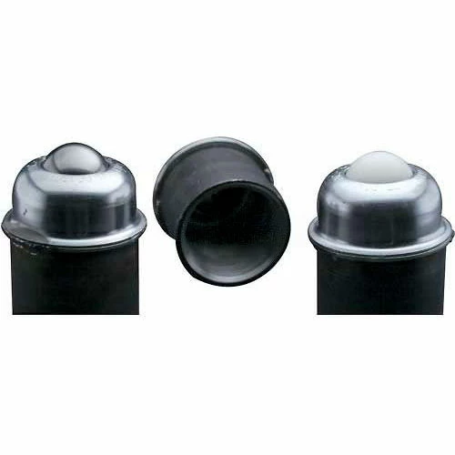 1-1/2 inch carbon steel main ball rotating on 3/16 in carbon steel support balls with a foam seal in a hardened and zinc plated carbon steel cup and cover. All weld mounted on a 2″ threaded pipe coupling.